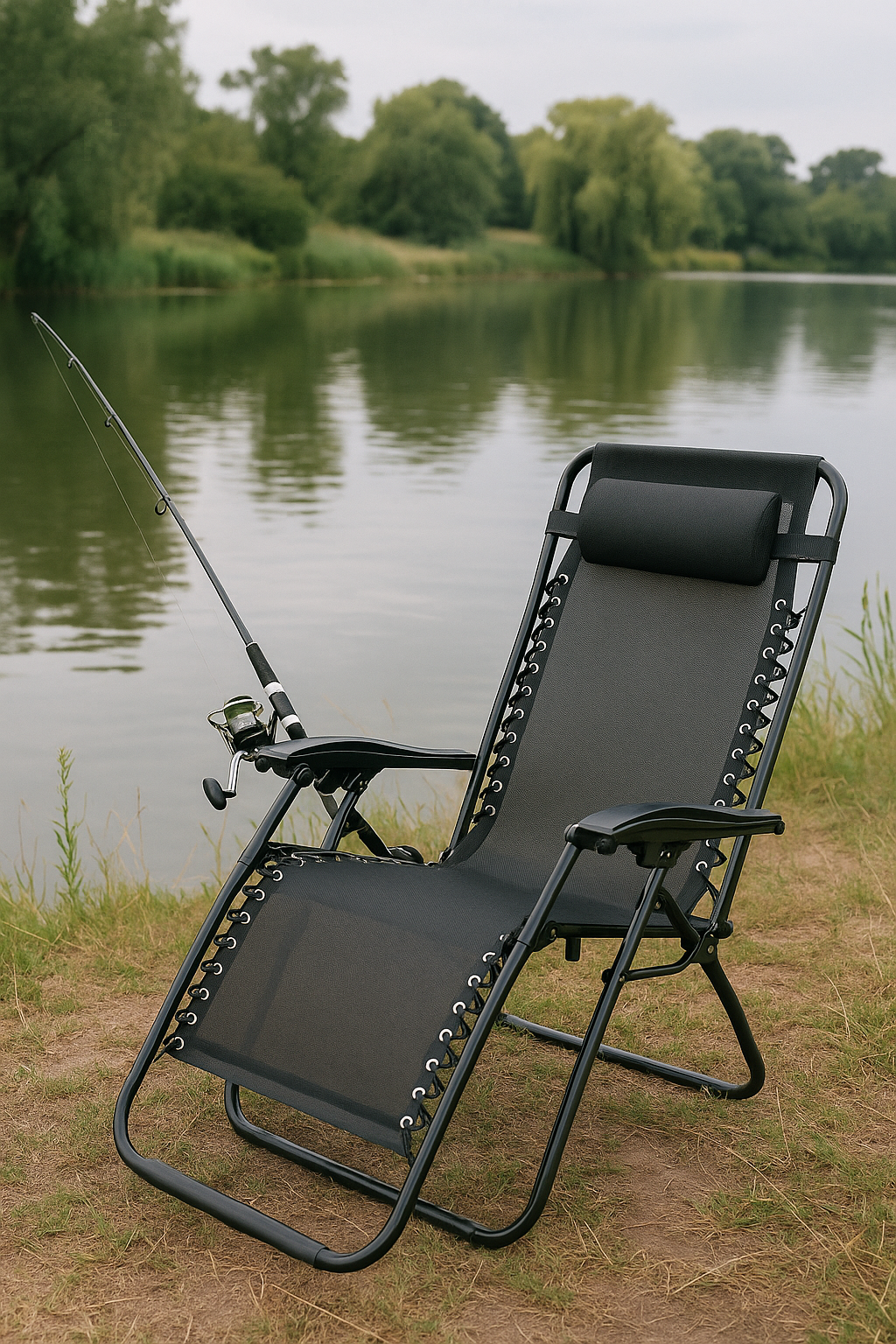Рама надійна, вага до 120 кг — це про цей шезлонг. І ще — підголівник додає комфорту”.