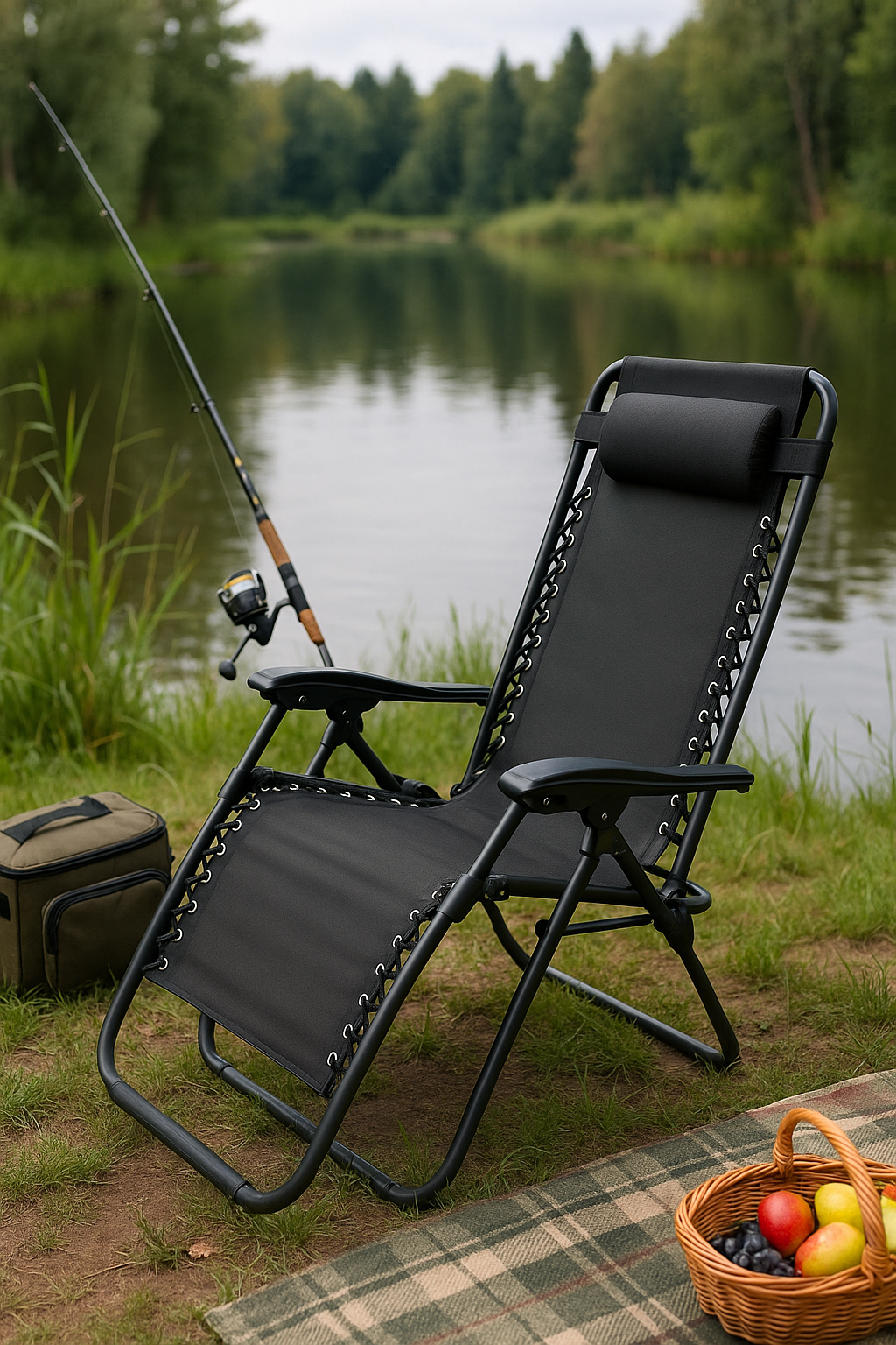 Рама надійна, вага до 120 кг — це про цей шезлонг. І ще — підголівник додає комфорту”.